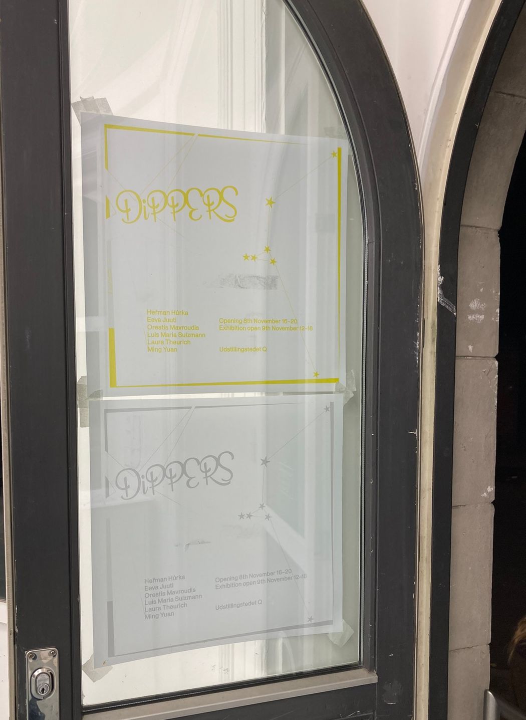 Poster for the group exhibiton ‘Dippers’ at ‘Udstillingsstedet Q’ in Copenhagen.