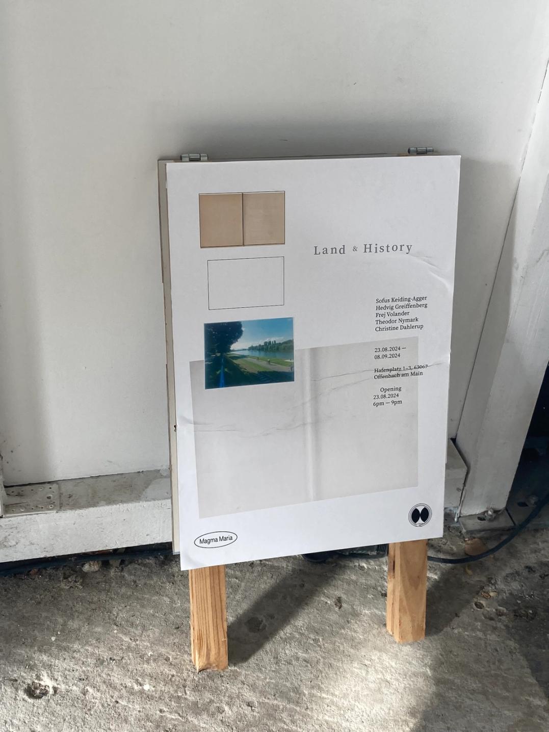 Poster for the group exposition ‘Land & History’ for the gallery space Magma Maria in Offenbach am Maim, Germany.