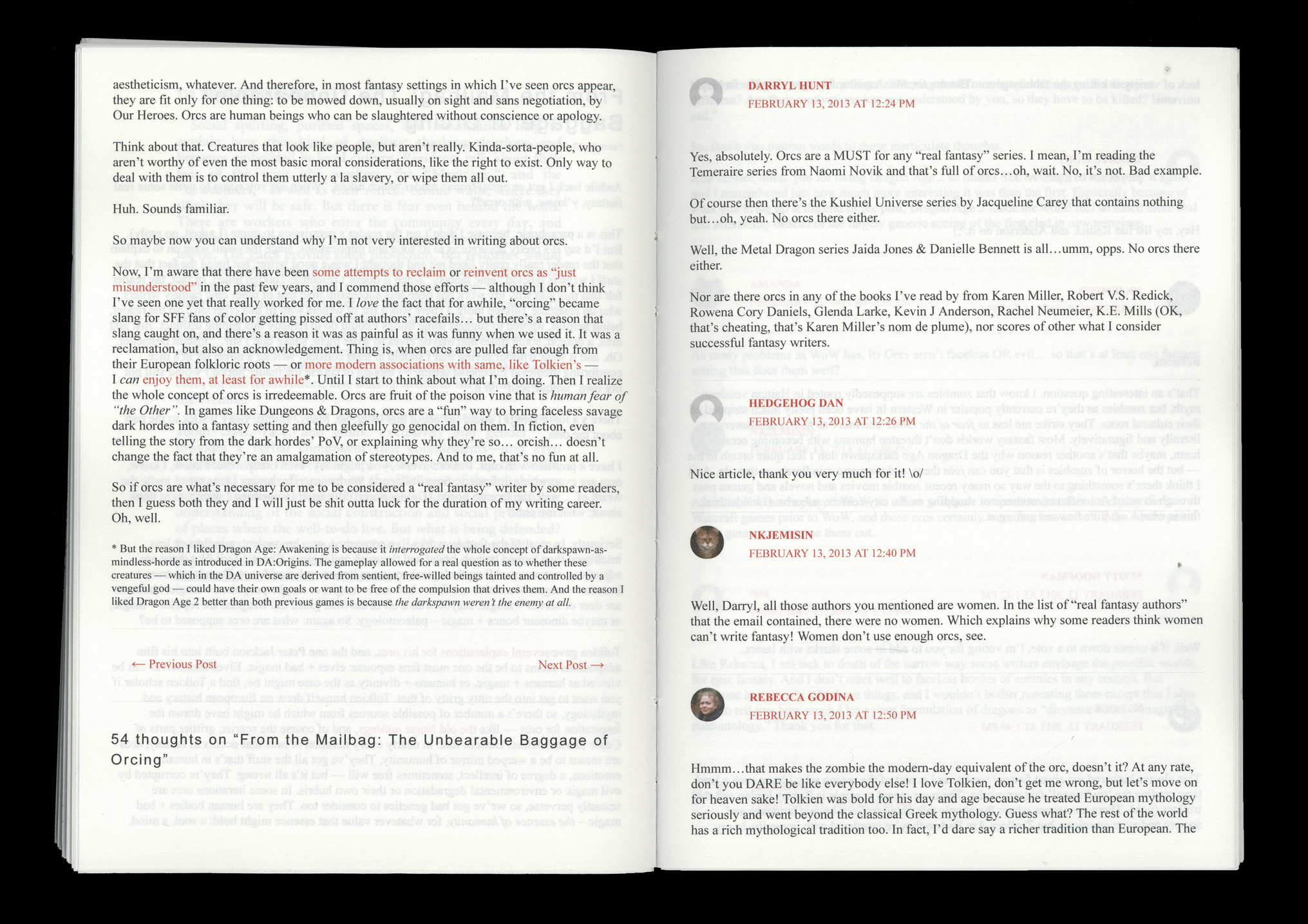 A collection of texts and articles downloaded as pdf's printed bound and glued. The cover is folded as a pocket containing a booklet with a collection of references thematically similar to the texts. All references are rooted in pop culture as well as science and literature.